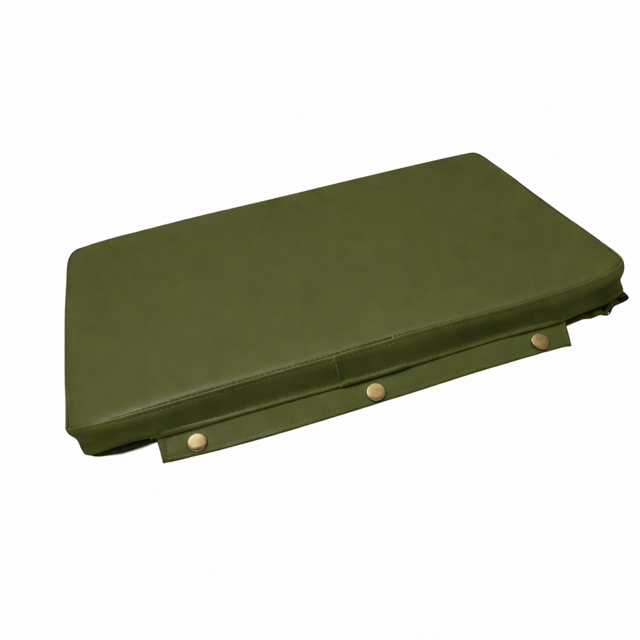 Back cushion for bench seat including padding and buttons.