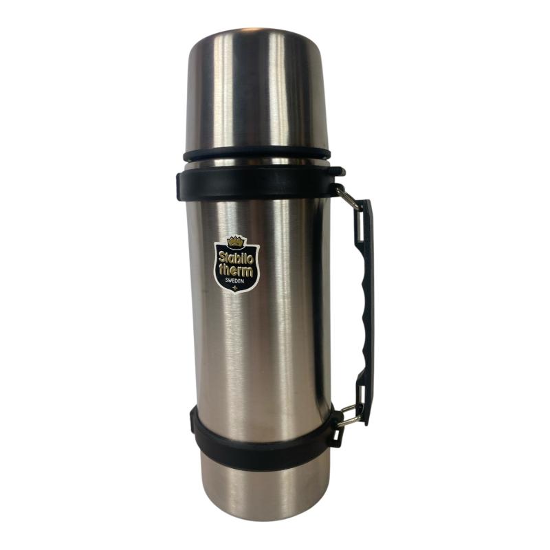 A stainless steel thermos with a side handle that makes it easy to hold and pour. Keeps your drink hot or cold for extended periods — perfect for outdoor activities such as hunting or when you’re on the go. Easy to transport and built to withstand tough conditions.