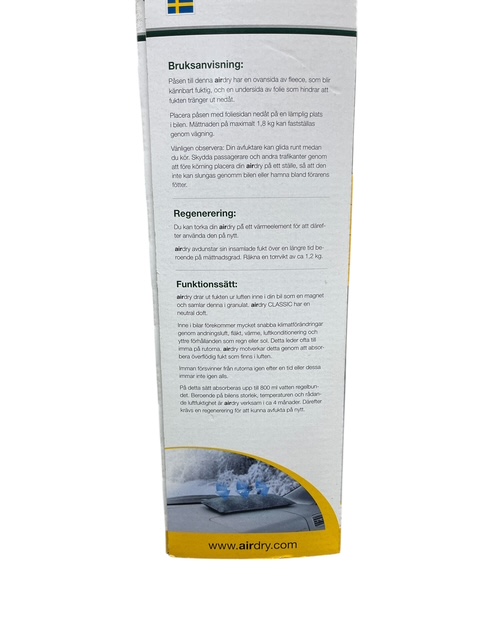 Den drar fukt ur luften i fordonet och lagrar den i naturligt aktivt granulat.